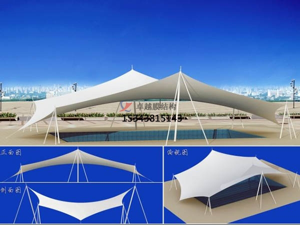 一個城市的中心區(qū)反映一個城市的地理風(fēng)貌和民族風(fēng)情,同時,也是一個城市文化發(fā)展程度的標(biāo)志。而景觀設(shè)計要求其具有廣泛的可讀性、雅俗共賞,既有超凡脫俗的藝術(shù)價值,又能使大眾喜聞樂見與大眾息息相通。膜結(jié)構(gòu)以其輕盈飄逸的造型、柔美并帶有力量的曲線和大跨度和大空間的鮮明個性和標(biāo)識性,應(yīng)用于城市小品設(shè)計中。