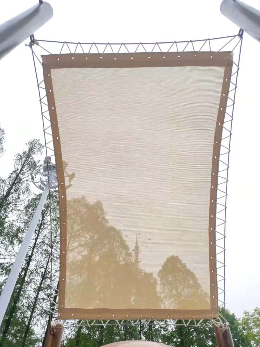 武漢瑪雅公園膜結(jié)構(gòu)景觀,是我公司與游樂(lè)設(shè)備公司配套工程,材料遮陽(yáng)效果好,質(zhì)量輕,采用法國(guó)進(jìn)口彩色法拉利網(wǎng)格膜材,空運(yùn)到我廠深加工后,現(xiàn)場(chǎng)安裝完成的,完工時(shí)間2021年4月7日