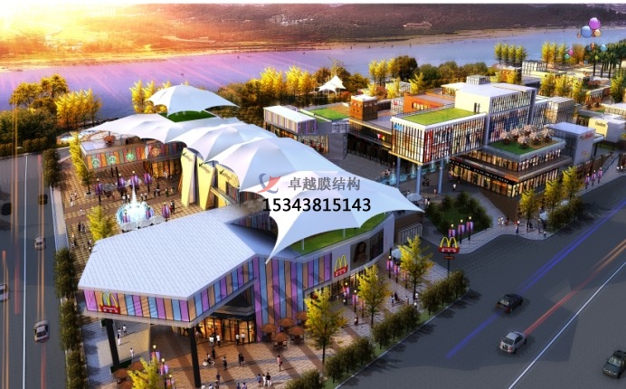 商業(yè)街膜結(jié)構(gòu)概念以及有何特點?商業(yè)膜結(jié)構(gòu)顧名思義是膜結(jié)構(gòu)應(yīng)用于商業(yè)中心的一種建筑,其實生活中我們可能已經(jīng)看到了,僅僅是因為對這種建筑不太了解,所以不認(rèn)識而已。商業(yè)街是人流聚集的一個主要場所。采用東西方向排列,以入口為中軸對稱布局,建筑立面多采用塔樓,騎樓,雨罩的元素使空間產(chǎn)生新的劃分,室內(nèi)空間既設(shè)置了集中商業(yè),又有零散店鋪,是西方現(xiàn)代MALL與中國傳統(tǒng)商鋪的有機組合。