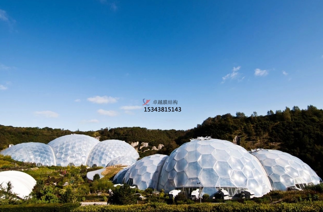 分為氣承式(整體氣壓支撐)與氣脹式(局部氣囊支撐)兩類。如某海灘餐廳項(xiàng)目采用32個橢圓形氣枕構(gòu)成1655㎡屋面,通過氣壓差維持結(jié)構(gòu)張力,配合六邊形印花實(shí)現(xiàn)動態(tài)遮陽。