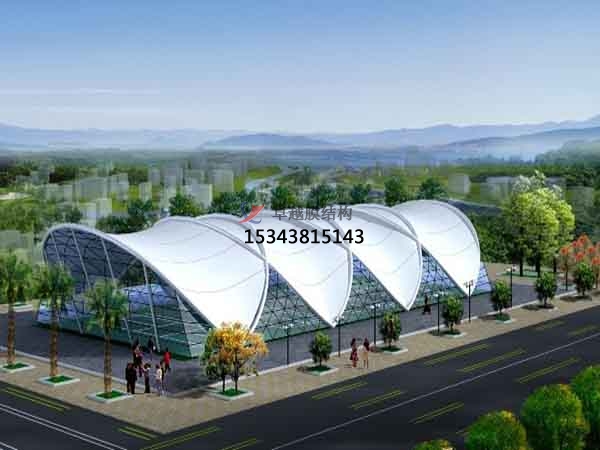 膜結(jié)構(gòu)罩棚膜材一種新興的建筑材料,已被公認(rèn)為是繼磚、石、混凝土、鋼和木材之后的"第六種建筑材料"。膜材本身不能受壓也不能抗彎,所以要使膜結(jié)構(gòu)正常工作就必須引入適當(dāng)?shù)念A(yù)張力。此外,要保證膜結(jié)構(gòu)正常工作的另一個(gè)重要條件就是要形成互反曲面。傳統(tǒng)結(jié)構(gòu)為了減小結(jié)構(gòu)的變形就必須增加結(jié)構(gòu)的抗力;而膜結(jié)構(gòu)是通過改變形狀來分散荷載,從而獲得更小內(nèi)力增長的。當(dāng)膜結(jié)構(gòu)在平衡位置附近出現(xiàn)變形時(shí),可產(chǎn)生兩種回復(fù)力:一個(gè)是由幾何變形引起的;另一個(gè)是由材料應(yīng)變引起的。通常幾何剛度要比彈性剛度大得多,所以要使每一個(gè)膜片具有良好的剛度,