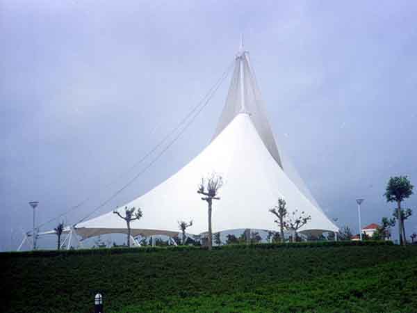 2、一個城市的中心區(qū)反映一個城市的地理風貌和民族風情,同時,也是一個城市文化發(fā)展程度的標志。而景觀設計要求其具有廣泛的可讀性、雅俗共賞,既有超凡脫俗的藝術價值,又能使大眾喜聞樂見與大眾息息相通。張拉膜以其輕盈飄逸的造型、柔美并帶有力量的曲線和大跨度和大空間的鮮明個性和標識性,應用于城市小品設計中。