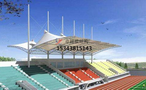 膜結(jié)構(gòu)看臺造型美觀大方,空間跨度大。更好的體現(xiàn)了膜結(jié)構(gòu)建筑空間跨度的優(yōu)勢,而且施工周期短。