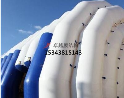2、我公司利用膜結構的輕巧,別致的造型建造各種半封閉,全封閉充氣膜結構中的高強度柔韌薄膜稱膜材,它是一種耐腐蝕、耐高溫、耐久用、高強度的樹脂類涂層織物,由多種復合PVC樹脂涂層刀刮成型,具有質(zhì)地柔韌、厚度小、重量輕、透光性好的特點。對自然光吸收和透射能力、阻燃,具有良好的耐久、防火、氣密等特性;表面經(jīng)過特氟龍?zhí)幚砘蚨?a title="氧化">氧化鈦抗老化處理,具有較高的自清潔性能。下面就大家介紹一下我公司在張家界市地區(qū)完成的部分膜結構項目。