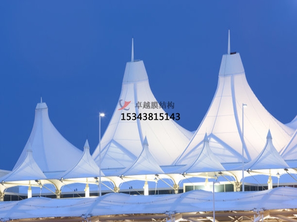 2、 透光性:透光性是現(xiàn)代膜結構被廣泛認可的特性之一。膜材的透光性可以為建筑提供所需的照度,這對于建筑節(jié)能十分重要。對于一些要求光照多且亮度高的商業(yè)建筑等尤為重要。通過自然采光與人工采光的綜合利用,膜材透光性可為建筑設計提供更大的美學創(chuàng)作空間。夜晚,透光性將膜結構變成了光的雕塑。