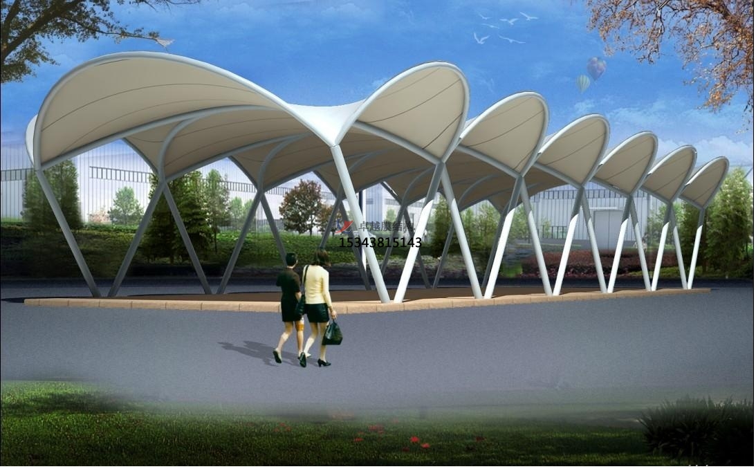 在作為各種跨度結(jié)構(gòu)主要受力構(gòu)件的同時(shí),還可以選擇透光甚至透明的膜材來控制進(jìn)入內(nèi)部空間的光線強(qiáng)弱,從而滿足各種設(shè)計(jì)要求。上述特性組合起來形成了張拉膜結(jié)構(gòu)獨(dú)特的造型 ,可以說還沒有任何其他結(jié)構(gòu)可以比輕型張拉膜結(jié)構(gòu)用更少的材料達(dá)到如此之多的功能和效果。