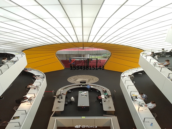 近年來(lái),隨著建筑空間觀念的日益深化以及科學(xué)手段的不斷提高,"回歸自然"、"沐浴自然之溫馨"已是現(xiàn)代建筑環(huán)境學(xué)發(fā)展的主流。室內(nèi)外的視線越來(lái)越模糊,出現(xiàn)了許多亦內(nèi)亦外、相互滲透的不定空間,如:大廳裝飾、天井、四季廳、動(dòng)植物園、公園廣場(chǎng)、觀景臺(tái)、舞臺(tái)、體育場(chǎng)館、體育看臺(tái)、文化娛樂(lè)場(chǎng)所等。由于膜材的光透性,白天陽(yáng)光可以透過(guò)膜材形成慢射光,使膜覆蓋空間內(nèi)達(dá)到和室外幾乎一樣的自然效果,因此膜結(jié)構(gòu)能創(chuàng)造出與自然環(huán)境相媲美的空間形式。