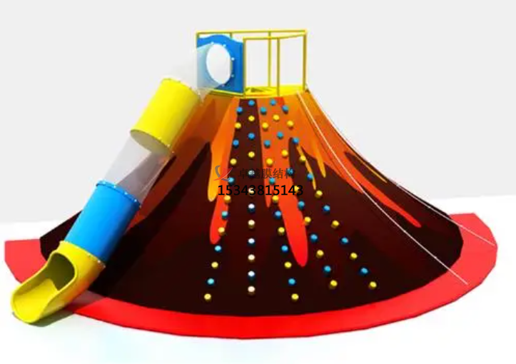火山攀巖---它可以塑造出火山的外形,使整個游樂設(shè)備的外觀看起來像火山,從而得名火山攀巖。這種膜結(jié)構(gòu)能夠很好地貼合設(shè)計需求,通過一定的設(shè)計和加工工藝,將膜材覆蓋在支撐結(jié)構(gòu)上,構(gòu)建出火山形狀的外觀,為游樂場所增添獨(dú)特的景觀元素。