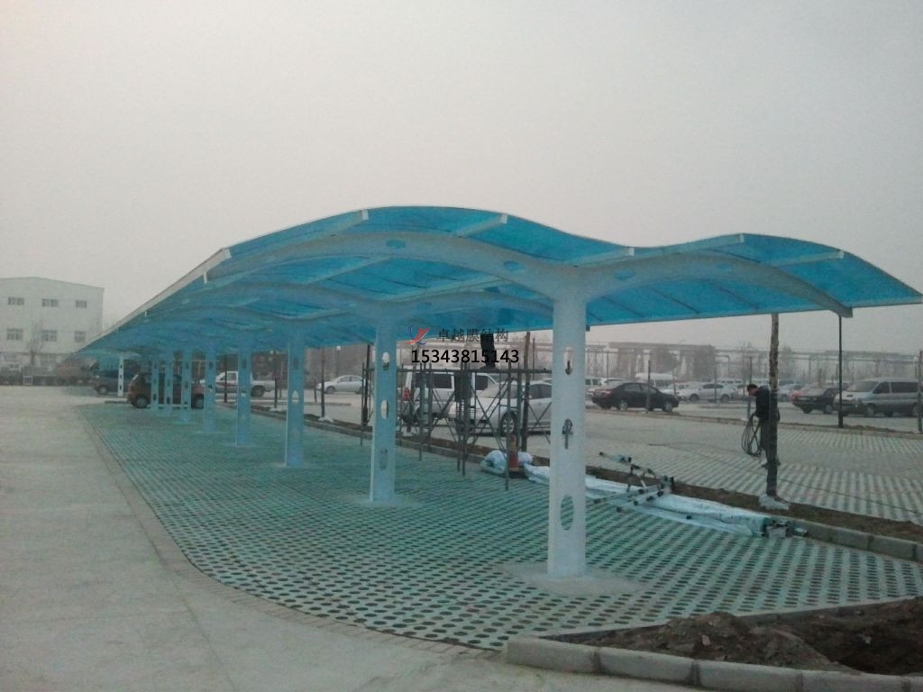 商業(yè)廣場雨棚搭建設(shè)計特別適合用來建造城市標志性建筑的屋頂,如體育與娛樂性場館,需有廣告效應(yīng)的商場、餐廳等。城市的交通樞紐是城市命脈的關(guān)鍵性建筑,使用功能要求建筑物各組成單元的標志明確。因而近來年,這類建筑越來越多采用膜結(jié)構(gòu)。建筑膜材料的使用壽命為 25 年以上。在使用期間,在雪或風荷載作用下均能保持材料的力學形態(tài)穩(wěn)定不變。建成于 1973 年的美國加州 La Verne 大學的學生活動中心是已有 23 年歷史的商業(yè)廣場雨棚搭建建筑.跟蹤測試與材料的加載與加速氣候變化的試驗,證明它的膜材料的力學性能與化學穩(wěn)定性指標下降了 20 %至 30 %,但仍可正常使用。膜的表層光滑,具有彈性,大氣中的灰塵、化學物質(zhì)的微粒極難附著與滲透,經(jīng)雨水的沖刷建筑膜可恢復其原有的清潔面層與透光性。