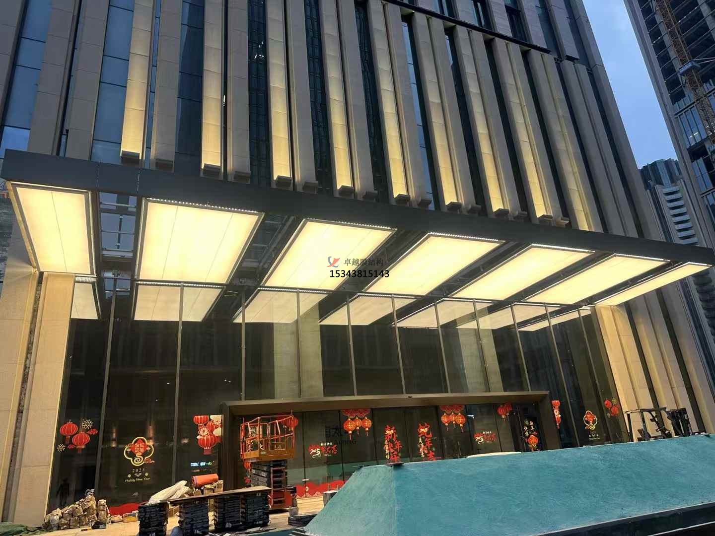 - 膜材張緊:在膜材固定和連接完成后,通過調整支撐結構或使用專門的張緊設備,對膜材進行張緊,使其達到設計要求的張力狀態(tài)。張緊過程中要密切關注膜材的變形情況,確保其變形在允許范圍內,且膜面平整、無褶皺。同時,要使用測量儀器對膜材的張力進行監(jiān)測和控制,保證各部位的張力符合設計值。