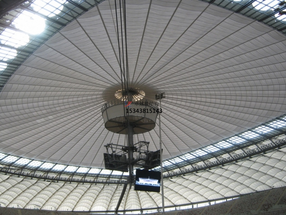 膜材柔軟,可塑性強,可以被拉伸成為各種動態(tài)感強的形狀,配合膜結構可以實現(xiàn)各種突破傳統(tǒng)模式的造型,豐富多樣,極具現(xiàn)代美。還可以創(chuàng)造大面積無柱覆蓋的空間。