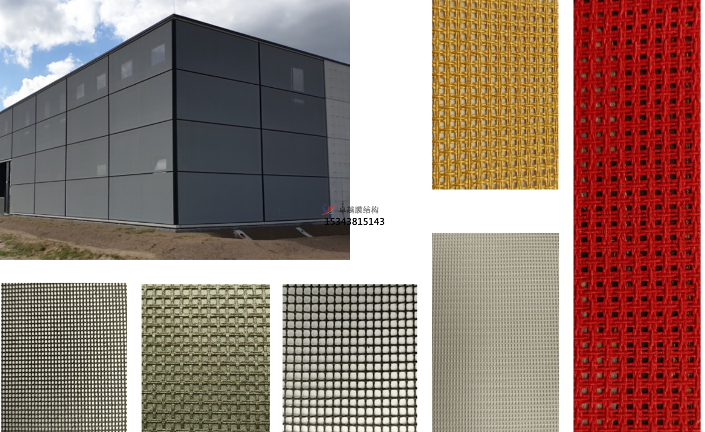 PTFE網(wǎng)格膜,基材紗線編織間距很大,涂層不再是滿覆,形成一定的開孔率(20~70%)。特點(diǎn)是透光率高(30~70%,透光透景)、裝飾遮陽(yáng)效果好;強(qiáng)度低于外膜、透氣透水、不吸音。