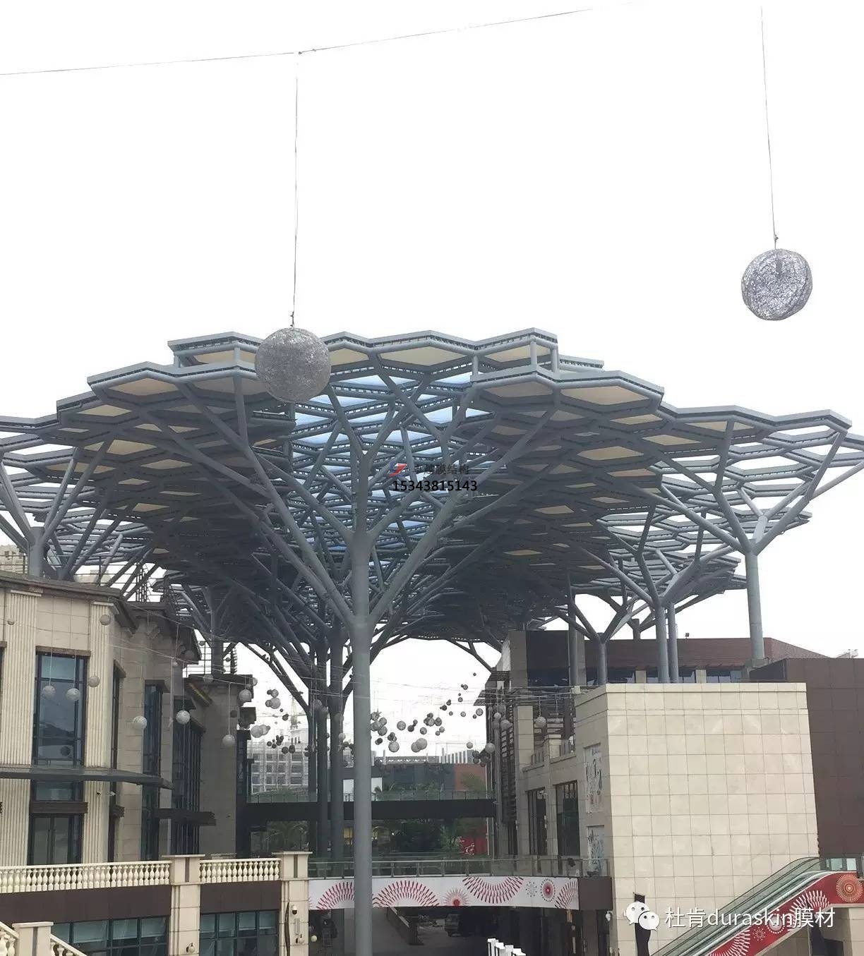 透光性:透光性是現(xiàn)代膜結(jié)構(gòu)較被廣泛認(rèn)可的特性之一。膜材的透光性可以為建筑提供所需的照度,這對于建筑節(jié)能十分重要。對于一些要求光照多且亮度高的商業(yè)建筑等尤為重要。通過自然采光與人工采光的綜合利用,膜材透光性可為建筑設(shè)計(jì)提供更大的美學(xué)創(chuàng)作空間。夜晚,透光性將膜結(jié)構(gòu)變成了光的雕塑。