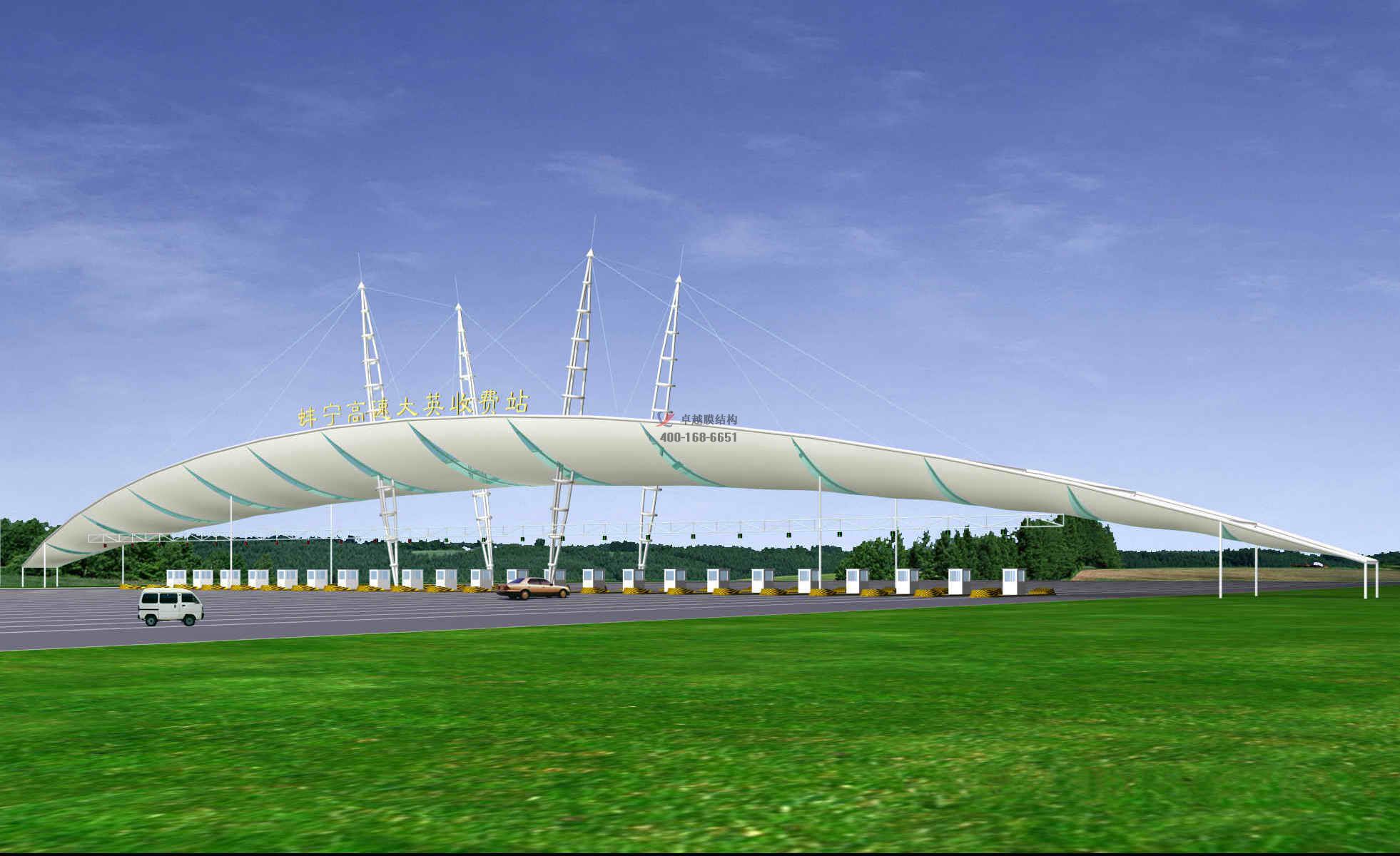 項(xiàng)目結(jié)構(gòu)形式:骨架式膜結(jié)構(gòu)收費(fèi)站