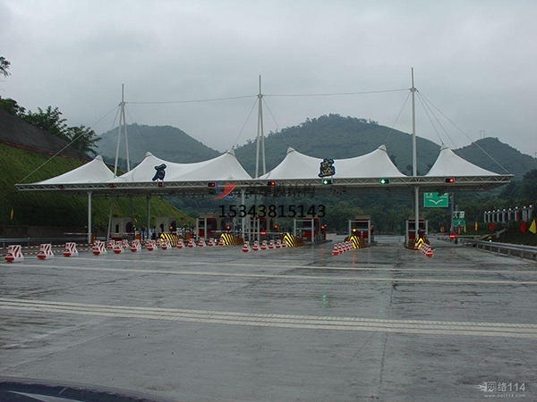 盤錦卓越膜結(jié)構工程公司是專業(yè)從事收費站雨棚,高速高速公路膜結(jié)構、高速服務區(qū)充電站配套雨棚,高速公路服務區(qū)景觀遮陽棚,高速公路加油站罩棚的專業(yè)廠家,擁有一批國內(nèi)更早從事膜結(jié)構行業(yè)的工程技術人才,并與盤錦地區(qū)各著名設計院、大學都有緊密合作,使用國際更先進的膜結(jié)構建筑設計軟件、荷載分析軟件、找型裁剪軟件、結(jié)構計算軟件,充分保證了盤錦卓越公司在中國膜結(jié)構領域技術領先性。下面給各位介紹一下我公司在盤錦及周邊縣市完工的一批高速公路收費站膜結(jié)構工程案例。