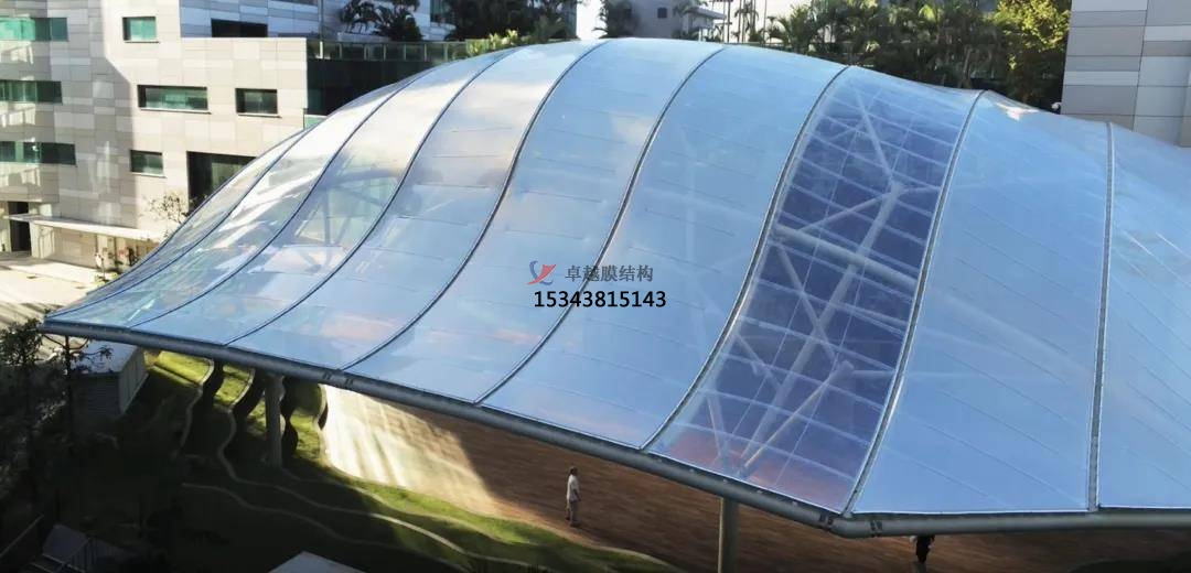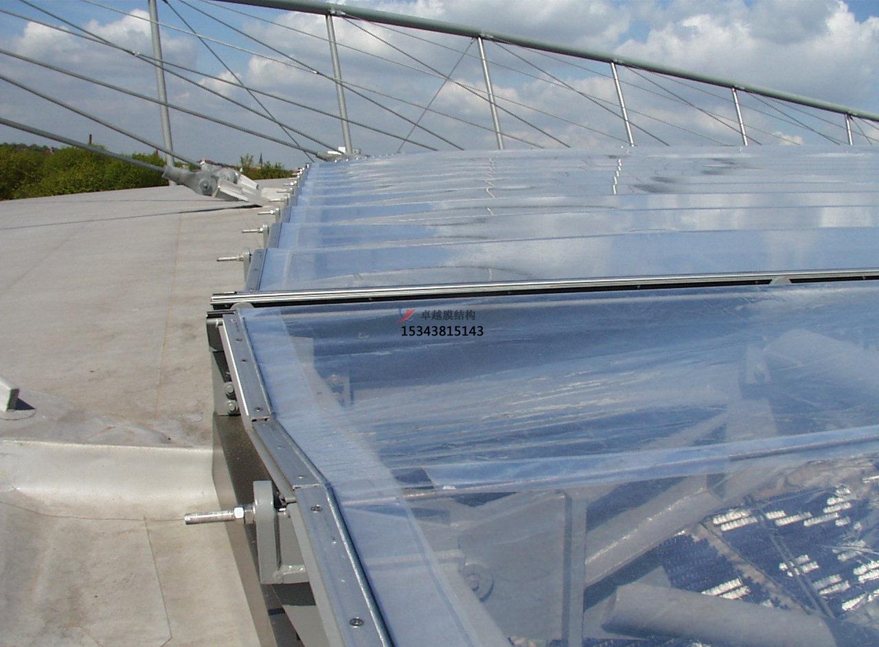 ETFE薄膜作為一種充氣后使用的材料,它可以通過絲網(wǎng)印刷鍍點控制薄膜的透明度,對遮光度和透光性進行調(diào)節(jié),有效地利用自然光;它可以通過控制充氣量的多少甚至充入氣體的種類來同時起到保溫隔熱、節(jié)省能源的作用。