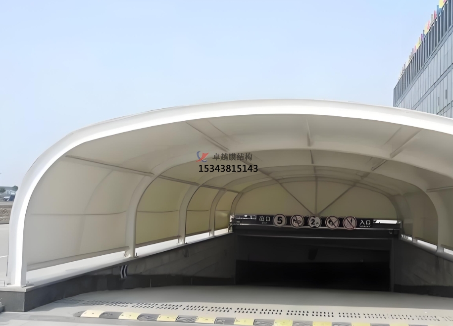 總之,車庫出入口膜結(jié)構(gòu)頂棚是一種集實(shí)用、美觀、環(huán)保和經(jīng)濟(jì)效益于一體的創(chuàng)新建筑形式。它的出現(xiàn)為現(xiàn)代建筑的發(fā)展提供了新的思路和方向,相信在未來的建筑領(lǐng)域中,膜結(jié)構(gòu)頂棚將會(huì)得到更加廣泛的應(yīng)用和發(fā)展。