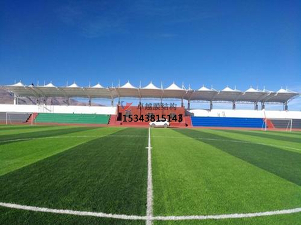膜結(jié)構(gòu)看臺是20世紀中期發(fā)展起來的一種新型建筑結(jié)構(gòu)形式,是由多種高強薄膜材料及加強構(gòu)件通過一定方式使其內(nèi)部產(chǎn)生一定的張應力,加上高強度材料鋼索、鋼結(jié)構(gòu)的采用,使其成為能承受一定外荷載作用的。適合跨越大空間而形成無柱的大跨度結(jié)構(gòu)體系,該體系自重輕、造型可以靈活多樣,它可打破純直線建筑風格模式達到了剛與柔、力與美得完美組合。具有良好的環(huán)保性、透光性、自清潔性更具有很好的防火性和抗震性,越來越受到建筑師的青睞,具有廣闊的應用前景。