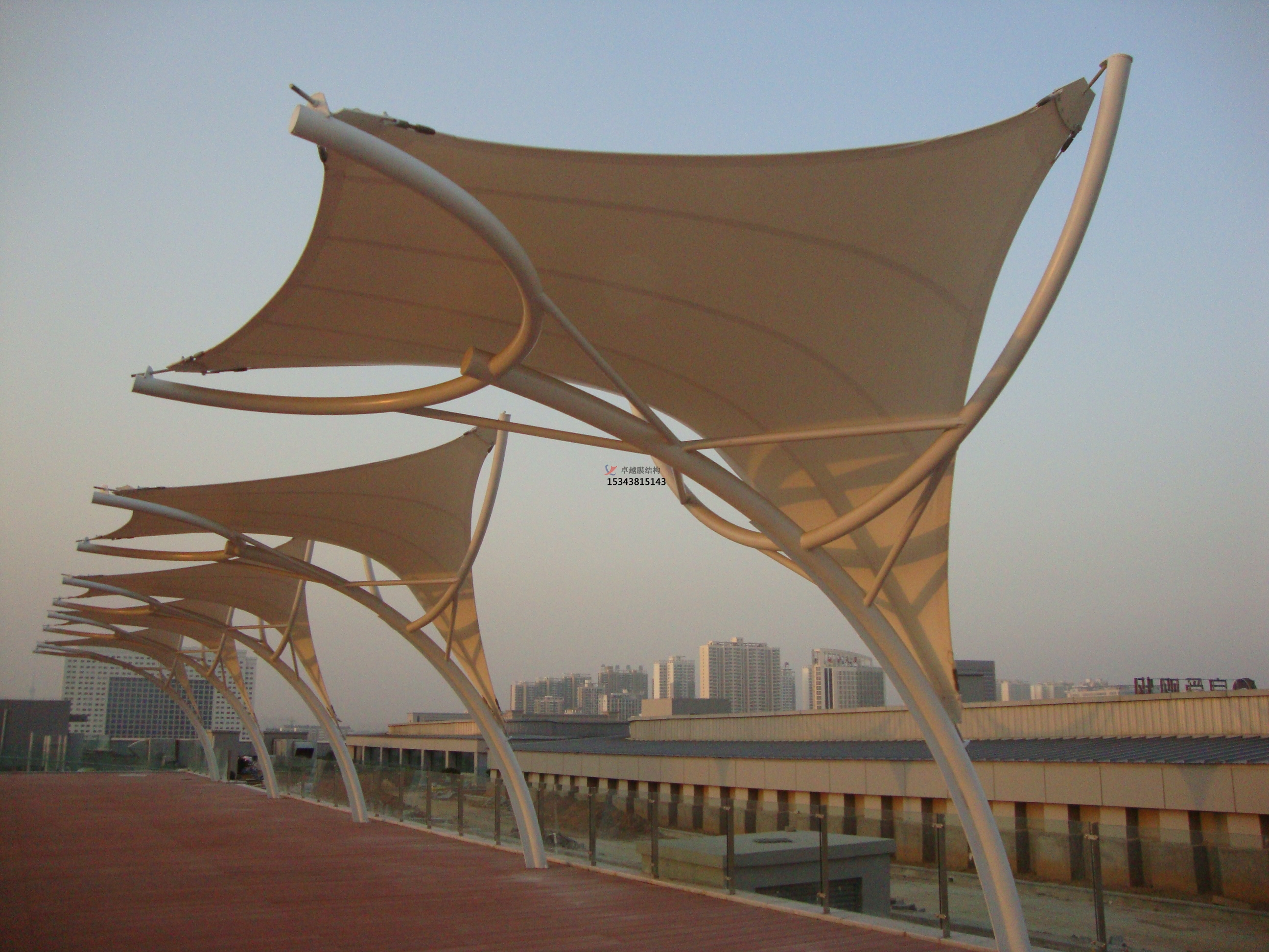 鄭州卓越膜結構工程有限公司是一家專業(yè)從事大跨度膜結構技術開發(fā)、設計、加工、安裝、維護的大型膜結構企業(yè)。是集膜結構項目規(guī)劃、方案設計、結構設計、靜動力學計算分析、鋼膜工程預算、鋼膜加工、整體結構安裝以及使用維護于一體的綜合性工程公司。