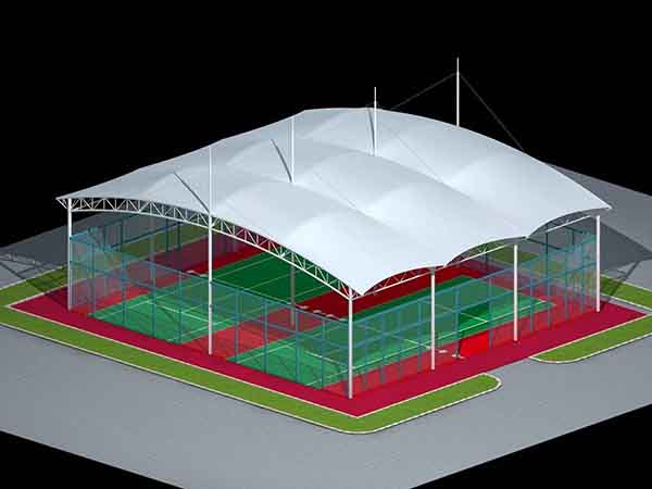 籃球場(chǎng)膜結(jié)構(gòu)罩棚是指安裝在籃球場(chǎng)上方的膜結(jié)構(gòu),起到遮陽(yáng)擋雨的作用。對(duì)于場(chǎng)地要求低,基本上所有籃球場(chǎng)地都可以做膜結(jié)構(gòu)頂棚,相比混凝土結(jié)構(gòu)的風(fēng)雨球館,施工周期更短,造價(jià)更低。膜的透光性比較好,所以可以保證場(chǎng)館內(nèi)的采光。先設(shè)計(jì),然后進(jìn)行材料加工,現(xiàn)場(chǎng)安裝,施工效率更高。下面介紹一下我們?cè)诤釉词兄苓吙h市完工的一些籃球場(chǎng)膜結(jié)構(gòu)罩棚設(shè)計(jì)施工案例。