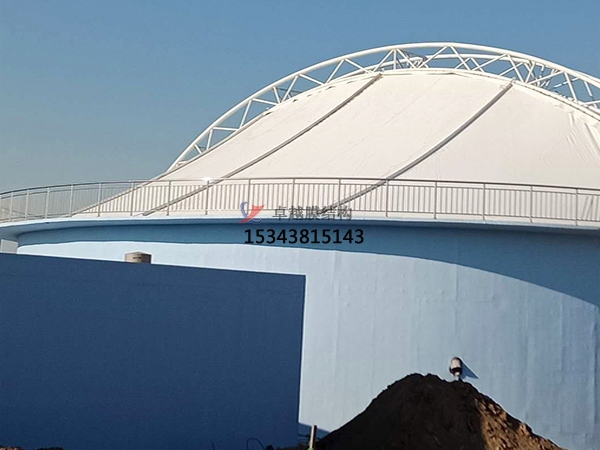 反吊膜結(jié)構(gòu)加蓋,就是利用鋼結(jié)構(gòu)在外,將膜材反吊的結(jié)構(gòu)形式,在污水池上進(jìn)行加蓋操作,四周用鋼架支撐,將廢氣密封在一個(gè)密閉的空間,防止其與空氣接觸而帶來(lái)二次污染。反吊膜結(jié)構(gòu)加蓋的好處就是避免了鋼結(jié)構(gòu)被池內(nèi)的廢氣腐蝕,將鋼結(jié)構(gòu)反吊在污水池外,避免了鋼結(jié)構(gòu)與池內(nèi)的廢氣接觸而遭到腐蝕,進(jìn)而延長(zhǎng)了鋼結(jié)構(gòu)的使用壽命。