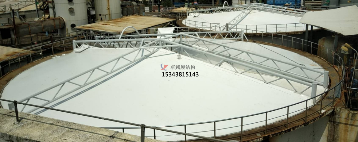 反吊膜用在污水廢氣治理上效果明顯.膜材占了很大的優(yōu)勢。目前市面上許多的反吊膜工程都是采用PVDF膜材.當然能用在膜結(jié)構(gòu)上的膜材不止這一種,還有ETFE膜材、PTFE膜材等,但相對來說PVDF膜材是較為適合做反吊膜的,原因在于:
