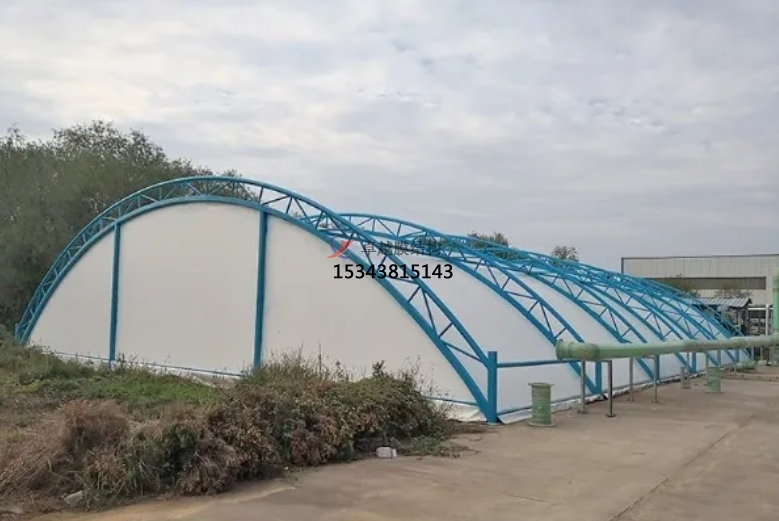 污水池加蓋膜結(jié)構(gòu)能夠防止污水池中的水分蒸發(fā),減少水量損失,增加污水處理量;同時(shí),污水池加蓋膜結(jié)構(gòu)能夠保持污水池內(nèi)的溫度穩(wěn)定,避免夏季水溫過(guò)高或冬季水溫過(guò)低,影響微生物的活性,提高污水處理效率。