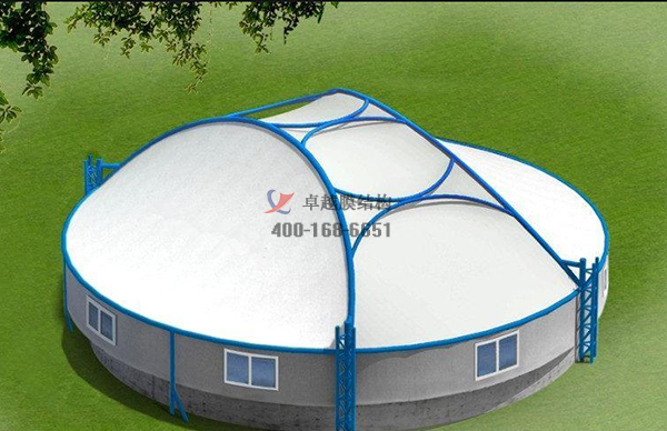 膜材質(zhì)輕,抗拉強(qiáng)度高,而且經(jīng)過特殊光固化處理,對(duì)防腐、防霉、防菌都變得十分優(yōu)越。對(duì)大跨度使用上具有優(yōu)勢(shì),造型多樣,美觀新穎;