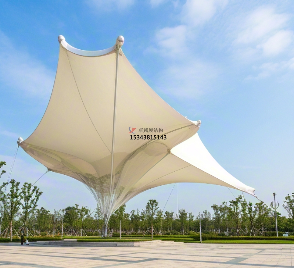 在城市公園與廣場的角落,膜結(jié)構(gòu)亭子與遮陽廊等設(shè)施為市民們提供了休憩與遮陽避雨的溫馨場所。這些精致的膜結(jié)構(gòu)小品與周圍的自然景觀和諧相融,不僅增強(qiáng)了公園的實(shí)用性,更成為公園中的亮麗風(fēng)景線。以上海的世紀(jì)公園為例,湖畔與綠意盎然之間,分布著幾座造型獨(dú)特的膜結(jié)構(gòu)亭子。在陽光的映照下,它們半透明的膜材散發(fā)出夢幻般的光影,吸引了眾多游客駐足觀賞。