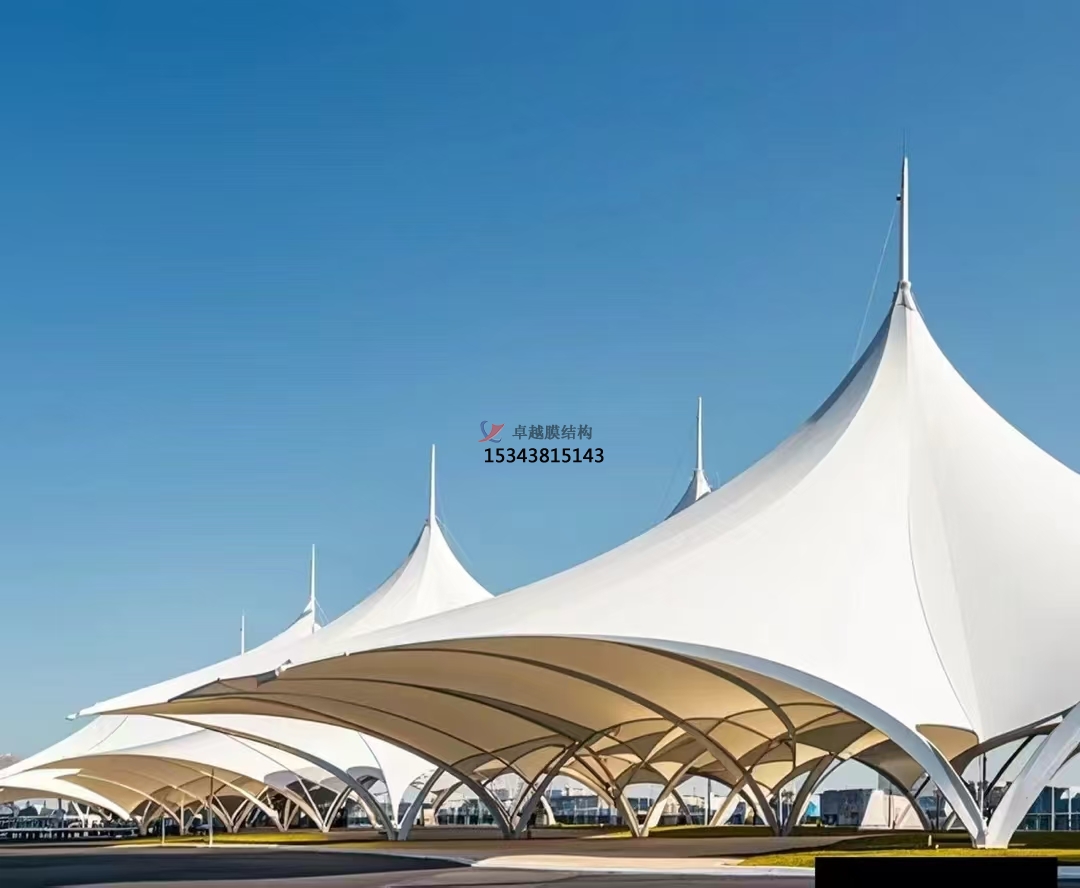 在各大交通樞紐,諸如機(jī)場、火車站的站前廣場,膜結(jié)構(gòu)雨棚的設(shè)計(jì)既便利了旅客出行,又以其醒目的形態(tài)有效引導(dǎo)了人流。以北京首都國際機(jī)場的T3航站樓為例,其前方的巨大膜結(jié)構(gòu)雨棚宛如一只振翅欲飛的鯤鵬,氣勢恢宏。它不僅滿足了實(shí)際使用需求,更成為機(jī)場一道別具一格的風(fēng)景線,給過往旅客留下了難以忘懷的印象。