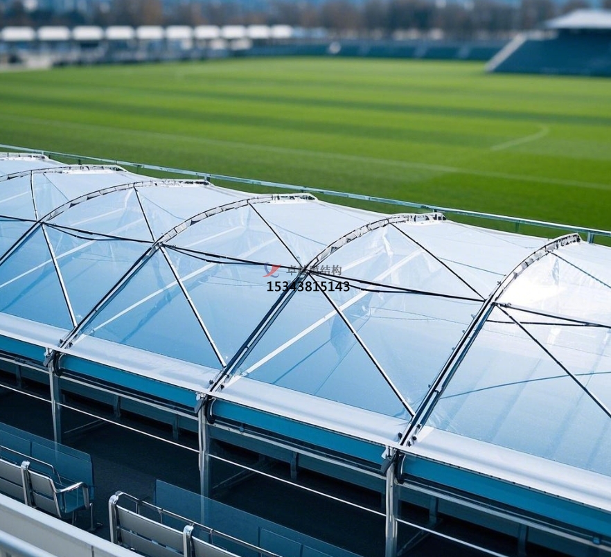 張拉式膜結構通過精確計算鋼索拉力與膜材應力分布,塑造出貼合觀眾視線的曲面。例如,在橢圓型體育場中,張拉膜結構可根據觀眾席弧度,設計成連續(xù)起伏的波浪狀,使每一排觀眾都能獲得無遮擋的最佳觀賽視角,視角平均提升 15° - 20°。?