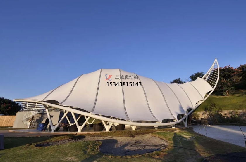 膜結構景觀采用輕質(zhì)膜材料和支撐結構,相對于傳統(tǒng)建筑材料更加輕便,能夠實現(xiàn)更大跨度的覆蓋,其柔性和可塑性使得設計師可以創(chuàng)造出各種獨特的形狀和曲線;同時膜結構景觀的外觀獨特,常常能夠成為建筑物的標志性元素。膜材料可以透光或反射光線,創(chuàng)造出豐富的光影效果,使得建筑物在不同的時間和角度呈現(xiàn)出不同的視覺效果。膜結構的流線型設計、鮮艷的色彩和創(chuàng)意的結構,使其在風景區(qū)中脫穎而出,成為一道獨特的景觀。它不僅美化了景區(qū)環(huán)境,更通過提供休憩、遮陽等功能,豐富了游客的游覽體驗。
