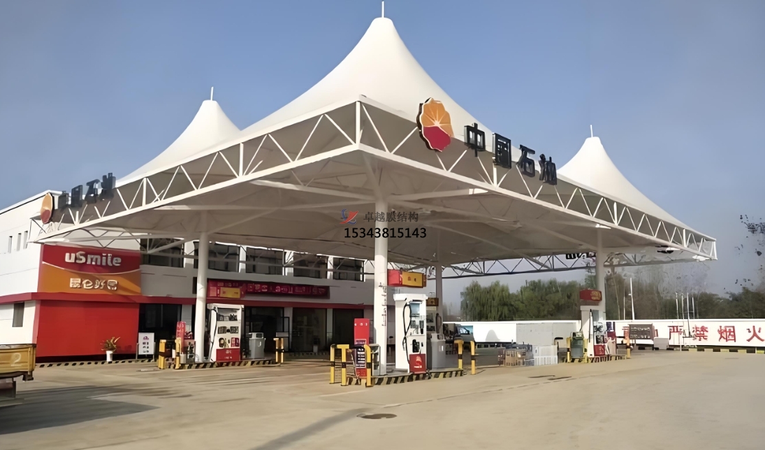 膜結(jié)構(gòu)頂棚通過技術(shù)迭代與設(shè)計(jì)創(chuàng)新,正在重新定義加油站的建筑形態(tài)。其“輕盈、高效、可持續(xù)”的特性,不僅滿足了能源補(bǔ)給場(chǎng)景的功能需求,更成為城市美學(xué)與低碳理念融合的典范。