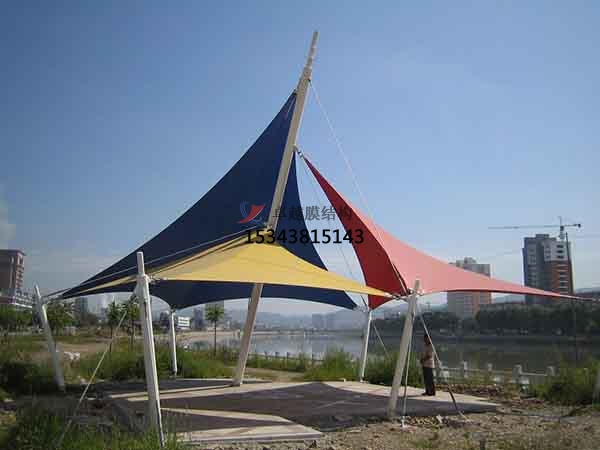 2、一個城市的中心區(qū)反映一個城市的地理風貌和民族風情,同時,也是一個城市文化發(fā)展程度的標志。而景觀設計要求其具有廣泛的可讀性、雅俗共賞,既有超凡脫俗的藝術價值,又能使大眾喜聞樂見與大眾息息相通。張拉膜以其輕盈飄逸的造型、柔美并帶有力量的曲線和大跨度和大空間的鮮明個性和標識性,應用于城市小品設計中。