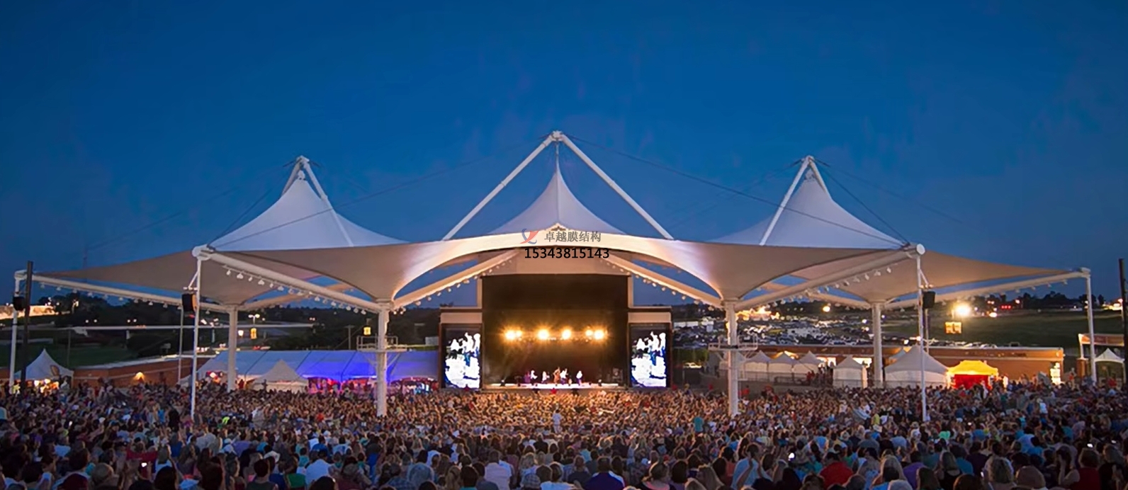 舞臺(tái)膜結(jié)構(gòu)遮陽(yáng)棚廣泛應(yīng)用于各種戶外演出和活動(dòng)中,如音樂會(huì)、戲劇表演、舞蹈演出等。此外,它還可以作為臨時(shí)展覽、會(huì)議等活動(dòng)的遮陽(yáng)設(shè)施。隨著戶外活動(dòng)和露天演出的增多,舞臺(tái)膜結(jié)構(gòu)遮陽(yáng)棚的實(shí)用性也越發(fā)凸顯。