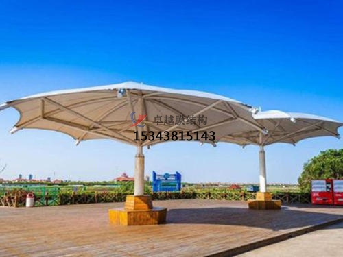 5、景觀膜結(jié)構(gòu)遮陽棚有哪些優(yōu)點?鋼景觀膜結(jié)構(gòu)遮陽棚特點主要有:1、造型新穎不刻板,2、施工快經(jīng)濟(jì)性高,3、自潔性佳免維護(hù),4、自重輕跨度大,5、防火抗震能力強(qiáng),6、適用范圍廣,7、使用壽命長。它不僅是功能性建筑,更是一個藝術(shù)建筑,越來越受到人們的親睞。
