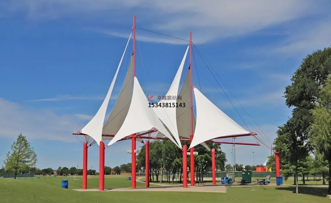 在社區(qū)和住宅小區(qū)內,景觀棚膜結構也有著諸多應用。比如在小區(qū)的兒童游樂區(qū)設置膜結構遮陽棚,讓孩子們在玩耍時能夠避免陽光直射;在小區(qū)的休閑廣場上搭建膜結構景觀亭,為居民們提供一個聊天、下棋、休閑娛樂的好去處;或者在小區(qū)的停車位上方安裝膜結構車棚,既保護了車輛免受日曬雨淋,又提升了小區(qū)整體的美觀度。