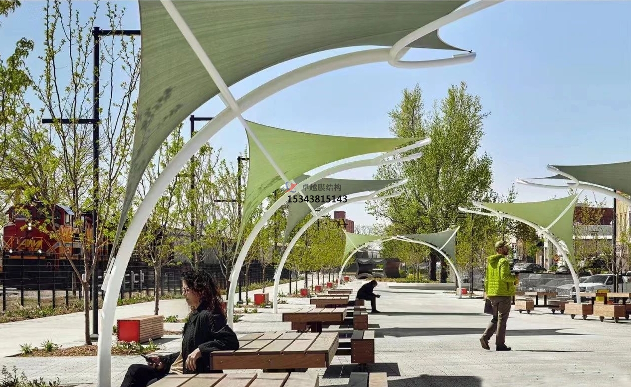 商業(yè)廣場和步行街是城市中人流最為密集的區(qū)域之一,為了給消費者提供一個舒適的購物和休閑環(huán)境,景觀棚膜結構在這里得到了廣泛應用。它們或是作為大型購物中心的入口雨棚,以其宏偉壯觀的造型迎接每一位顧客;或是作為步行街中央的休閑遮陽棚,為逛街的人們提供一片清涼的休憩之地;又或是作為商業(yè)活動的臨時展示棚,通過獨特的造型和燈光效果吸引人們的注意力,助力商業(yè)推廣。