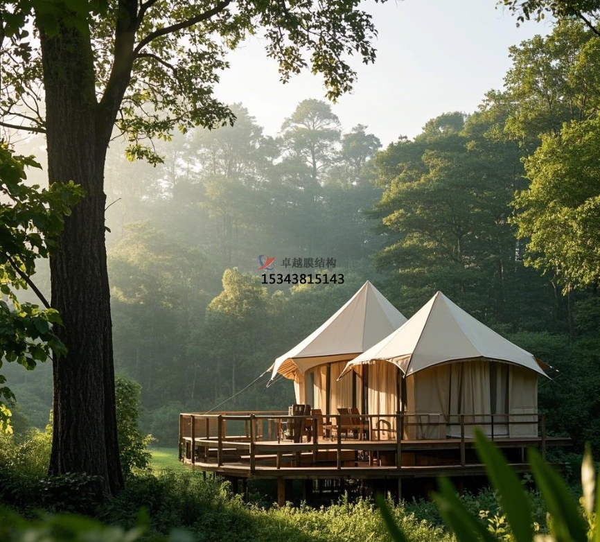 森林帳篷酒店:隱匿于茂密森林之中,如浙江湖州莫干山 Anadu 帳篷酒店。四周綠樹環(huán)繞,鳥鳴啁啾,帳篷與參天大樹、潺潺溪流為伴。清晨,陽(yáng)光透過(guò)樹葉縫隙灑在帳篷上,喚醒沉睡的旅人;夜晚,伴著輕柔的風(fēng)聲和偶爾的蟲鳴入眠,仿若與自然合為一體,是渴望靜謐、享受森林浴游客的首選。