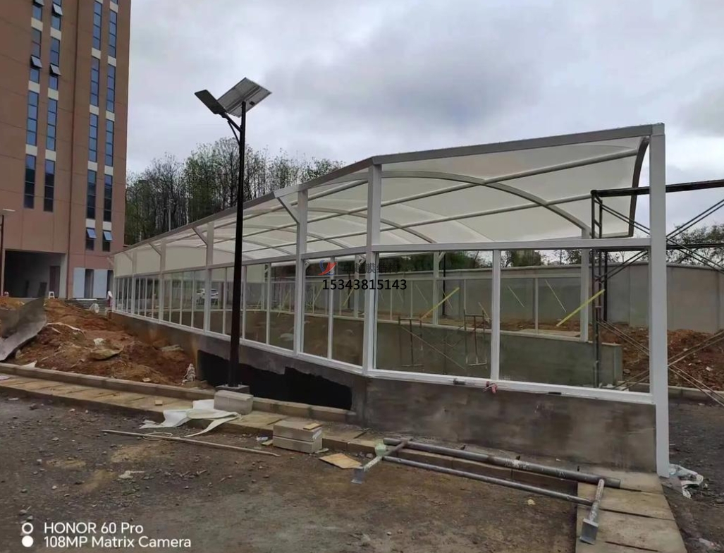 車庫(kù)入口膜結(jié)構(gòu)雨棚的設(shè)計(jì)過(guò)程中,通過(guò)合理使用鋁合金材料,可以使得整個(gè)結(jié)構(gòu)更加牢固可靠。
