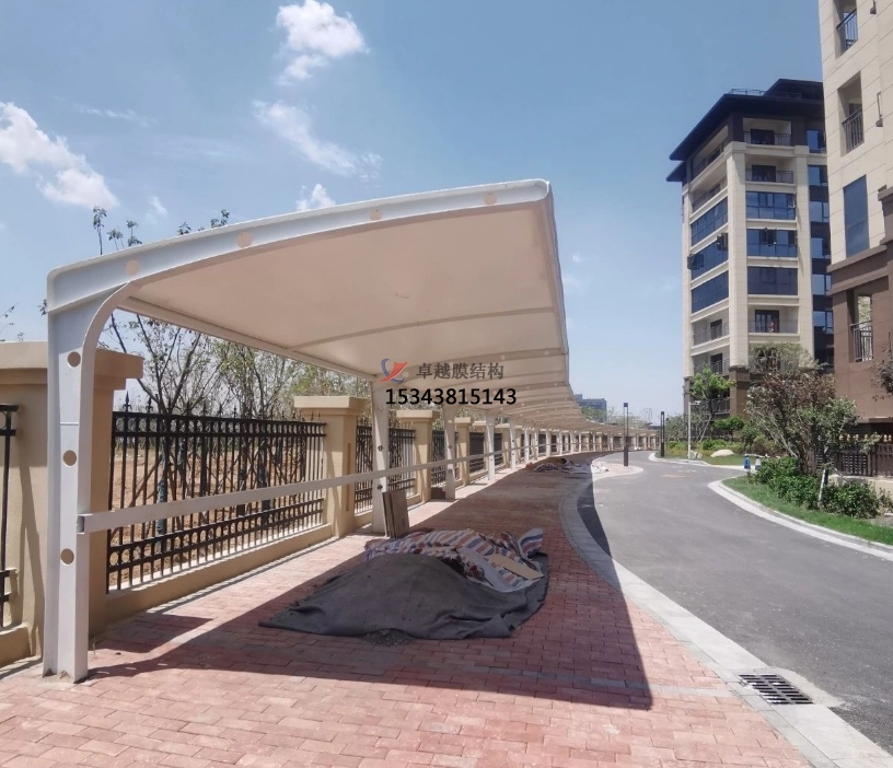 膜結(jié)構(gòu)車棚在與以往的舊式車棚的比較中,整體能承受的載荷大很多,膜結(jié)構(gòu)受力點(diǎn)小,單位尺寸上能承受的壓強(qiáng)高,膜結(jié)構(gòu)車棚都穩(wěn)固如山,并且膜結(jié)構(gòu)車棚的透光性達(dá)到13%,不會(huì)因?yàn)殚L(zhǎng)時(shí)間的直曬變黃,也不會(huì)物理特性發(fā)生變化,比如變脆,軟化等現(xiàn)象。